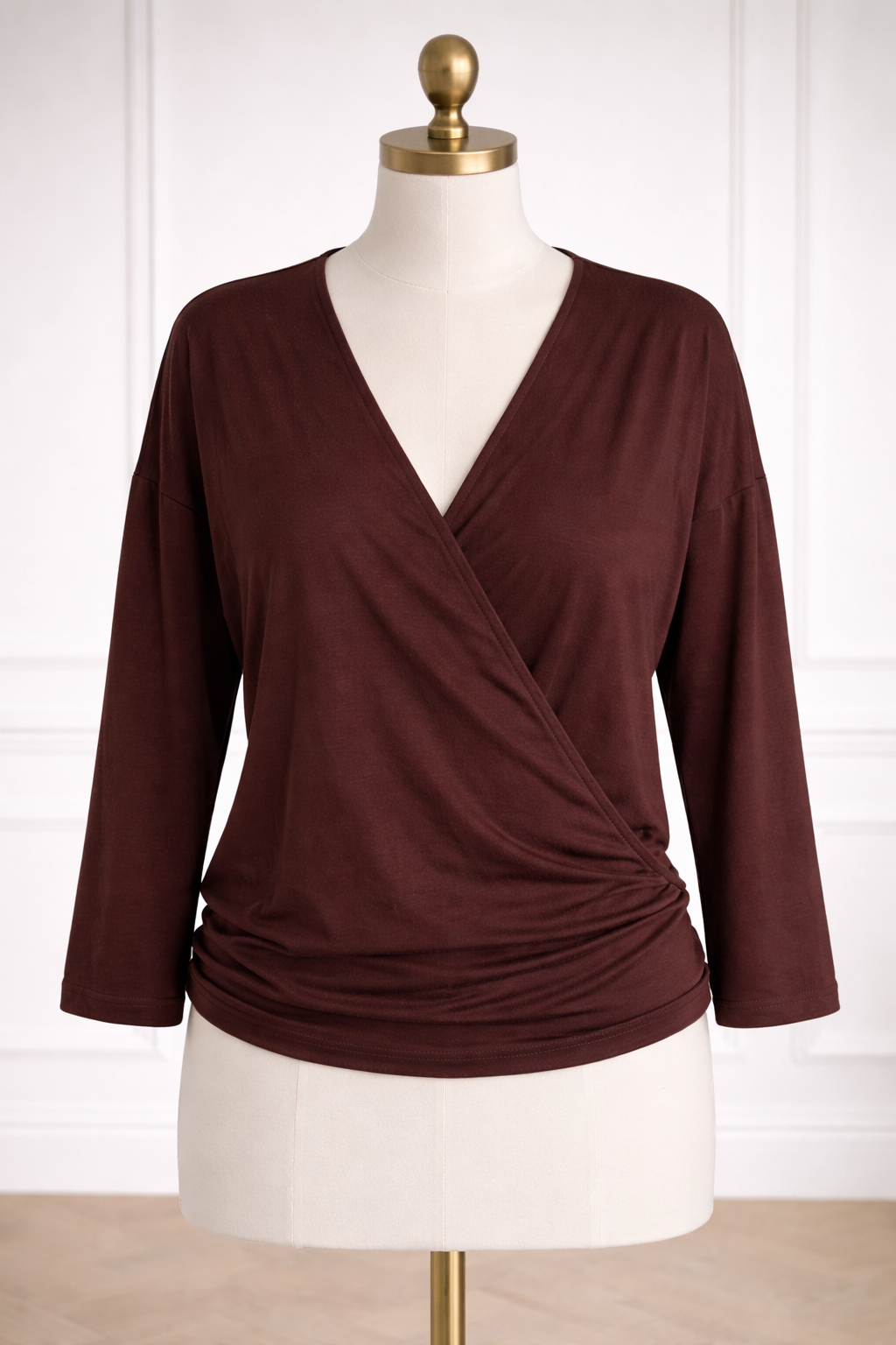 Kopertowy fason subtelnie podkreśla sylwetkę, a obniżona linia ramienia dodaje swobody i nowoczesnego luzu. Dzięki miękko układającej się dzianinie bluzka naturalnie dopasowuje się do ruchu i daje wyjątkowy komfort noszenia.