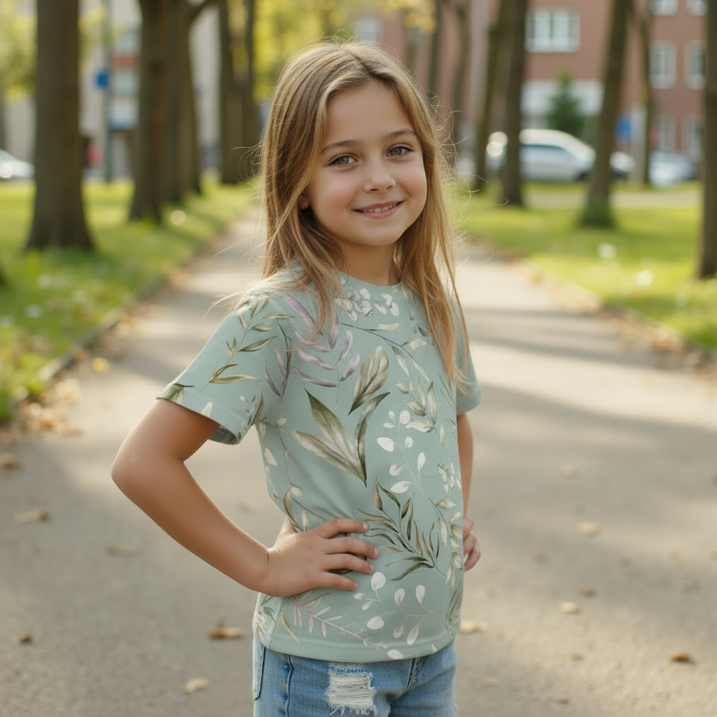 Klasyczny T-shirt dziewczęcy z rękawem główkowym to połączenie wygody i stylu, idealne na każdą okazję. Wykonany z miękkiej, oddychającej dzianiny bawełnianej, zapewnia komfort nawet podczas długiego użytkowania. Subtelne rękawy główkowe dodają eleganckiego akcentu. To niezastąpiony element garderoby dla każdej dziewczynki ceniącej lekkość i swobodę. Liściarka to jesienna kolekcja pełna miękkich barw i szelestu dziecięcej wyobraźni.