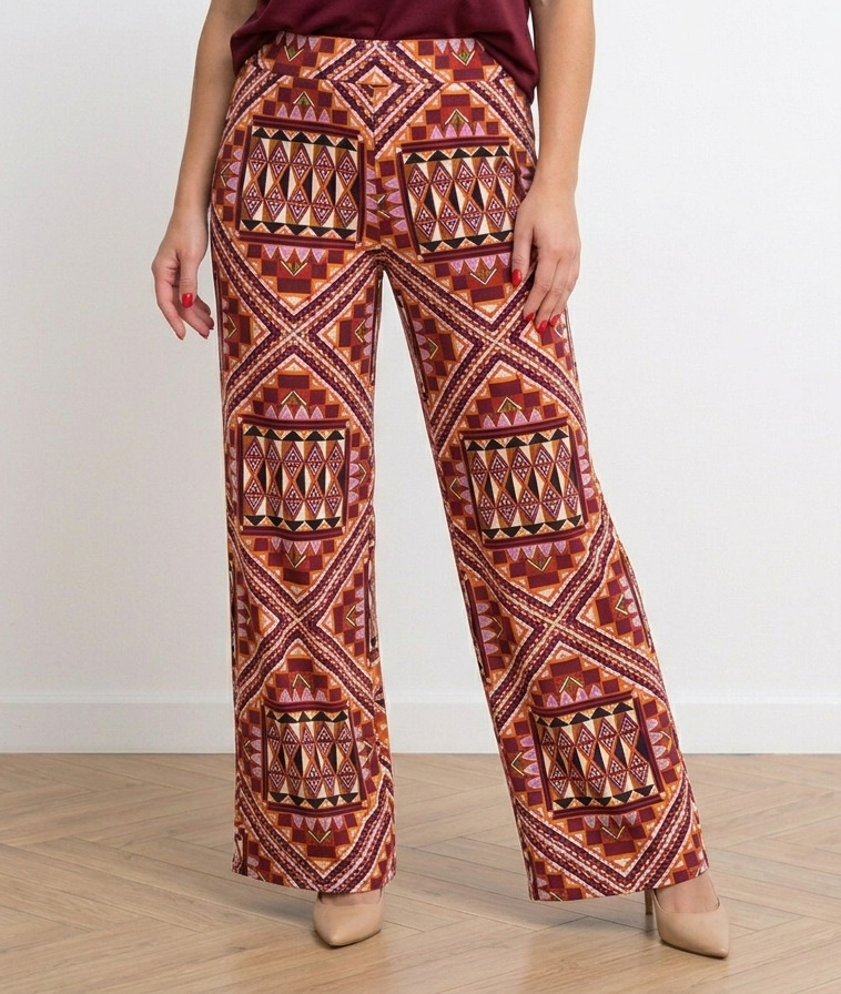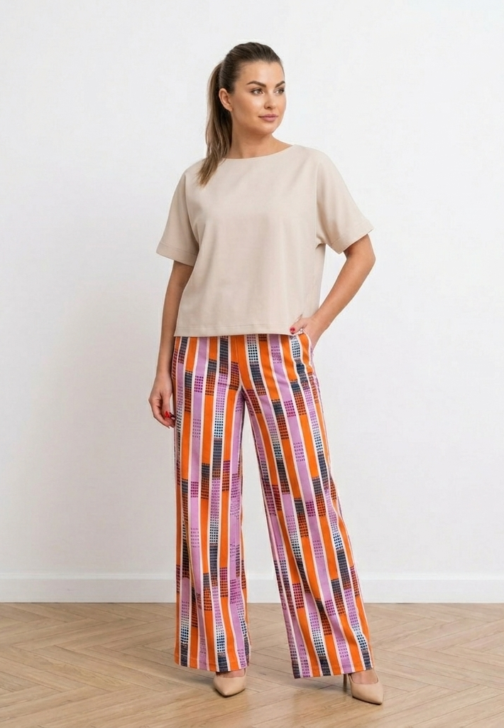 ✨To model, który dobrze odnajduje się zarówno w codziennych zestawach z prostym topem, koszulą czy lekką dzianiną, jak i w bardziej dopracowanych stylizacjach budowanych wokół wzoru.