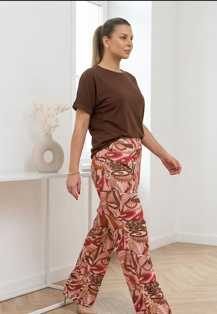 🌿Luźna nogawka nadaje sylwetce lekkości i swobody, a miękki jersey wiskozowy naturalnie pracuje w ruchu, delikatnie układając się podczas noszenia.
