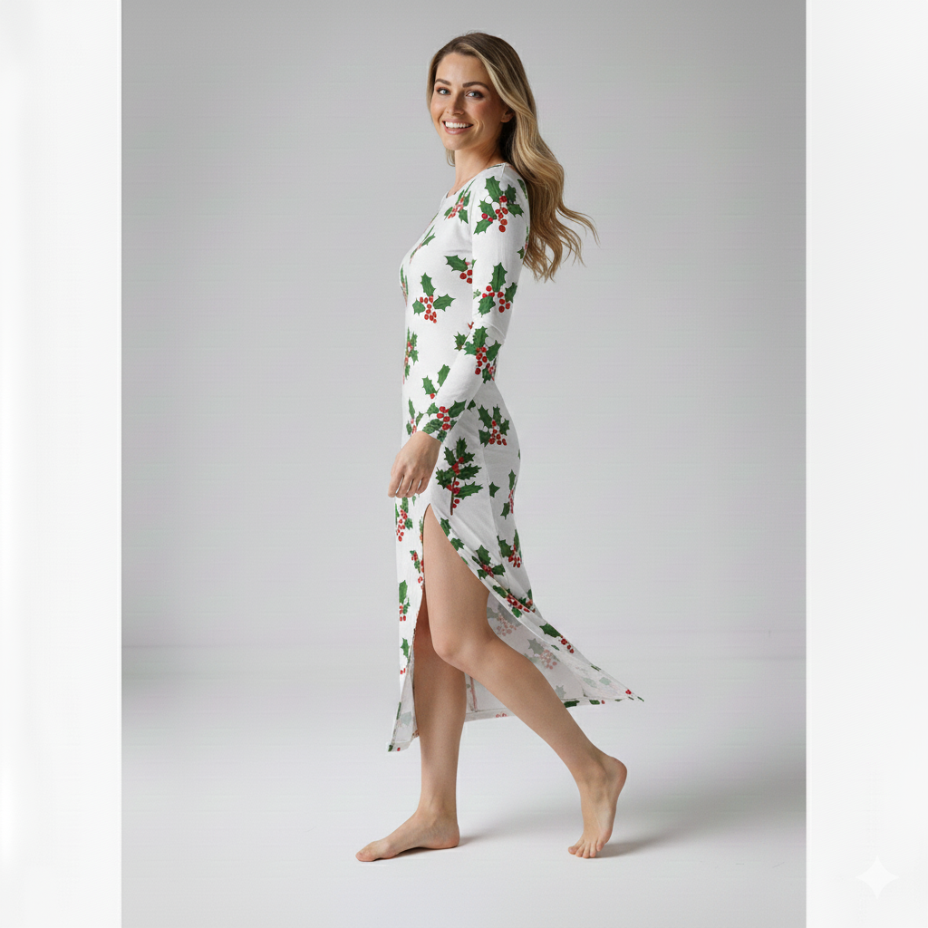 Świąteczna odsłona sukienki Terra Flow to połączenie elegancji i wygody, idealne na wyjątkowe okazje w świątecznym okresie. Delikatny materiał subtelnie dopasowuje się do sylwetki, podkreślając jej atuty, jednocześnie zapewniając komfort noszenia. Wyrafinowane wzory i ponadczasowy krój dodają niepowtarzalnego uroku, czyniąc tę sukienkę doskonałym wyborem na wigilijne spotkania czy wieczorne przyjęcia. Świętuj w wielkim stylu z Terra Flow!